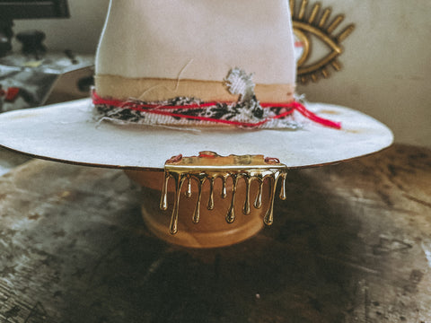 18K Liquid Gold Drip add-on for your Totem Crown. Add one to your custom hat order. Inquire on availability lead time.